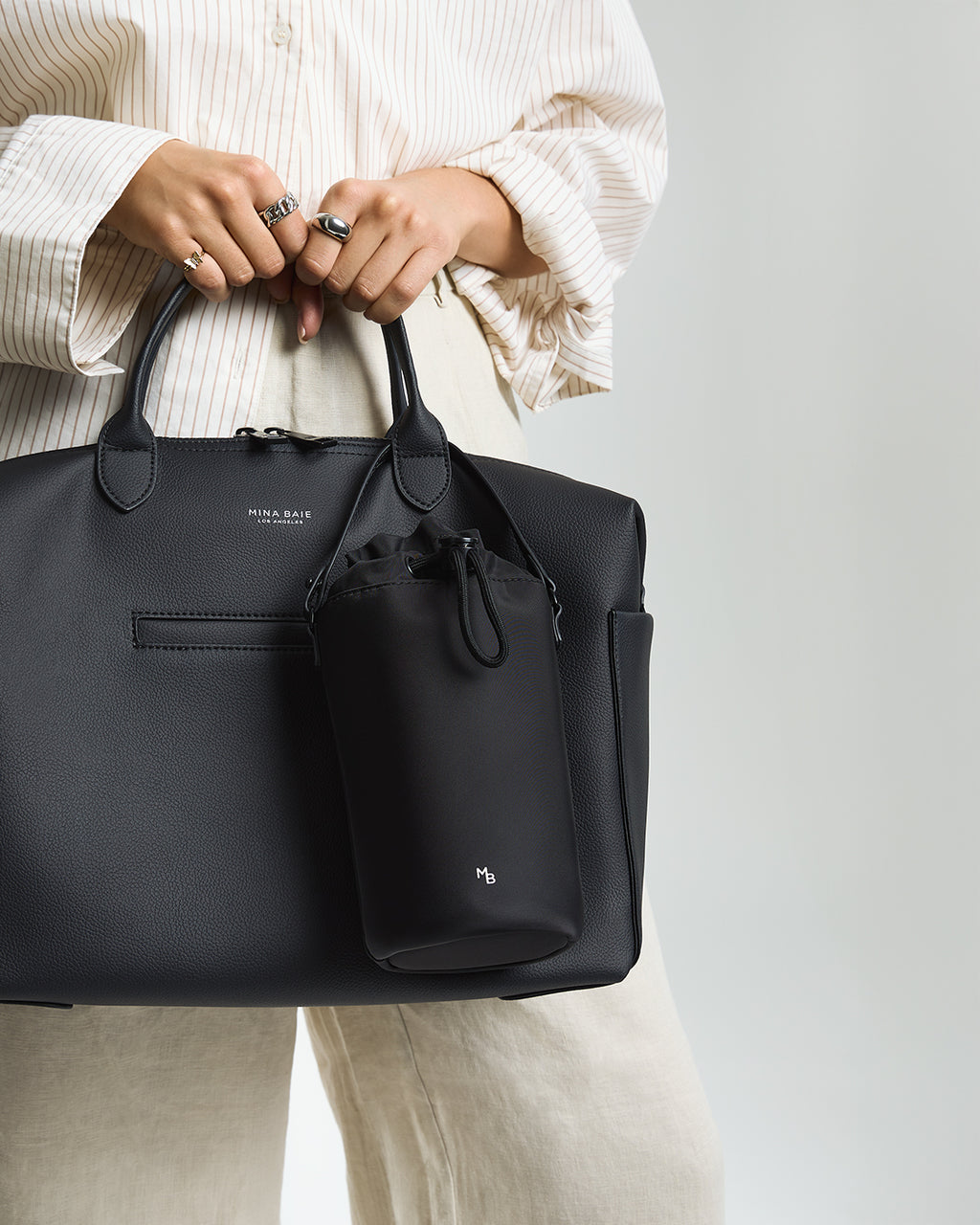 The bottle bag works really well to keep bottles cold. It holds one bottle. It’s perfect when I’m running somewhere and want to take a ready made bottle with me. If you put a small ice pack on the bottom it keeps things cold even longer. I love all things Mina!