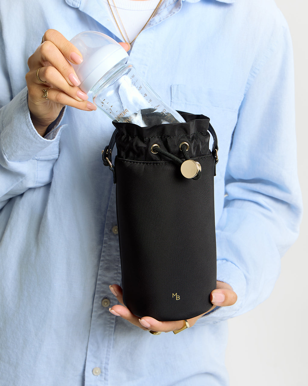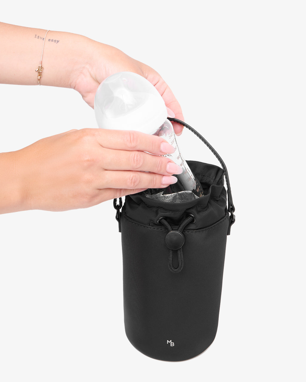 Designed to keep up with your busy lifestyle, the insulated Bebe Bottle Bag can attach to your stroller or bag. Whether you're heading out for a day at the park, a quick grocery run, or for a pump session at work, this new addition will complete your daily mom ritual. Phone, keys, wallet, Bebe Bottle Bag.