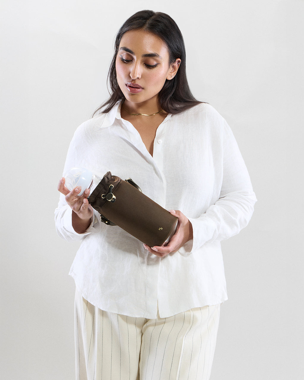 Perfect little bottle holder, so chic and functional. We can’t leave the house without it.