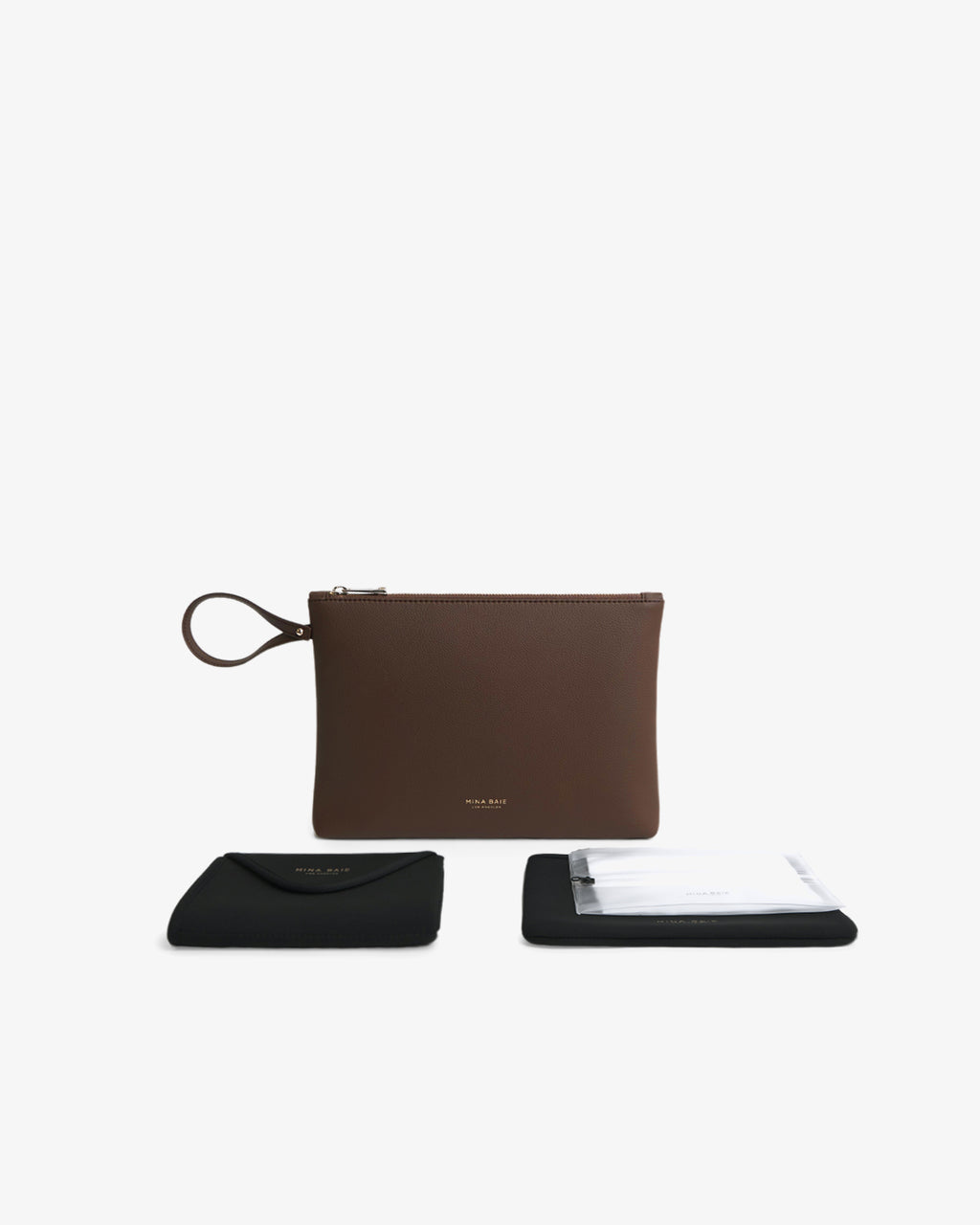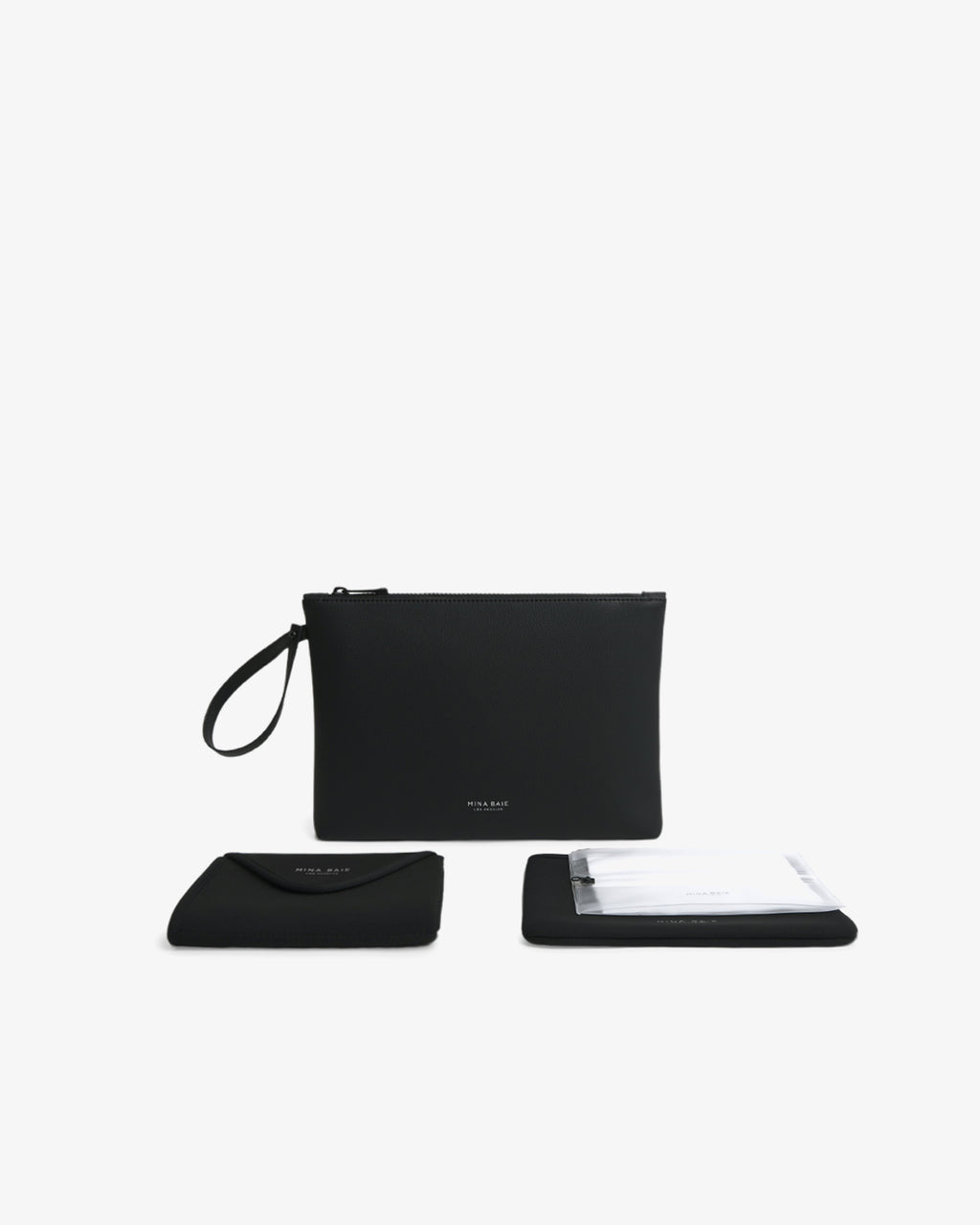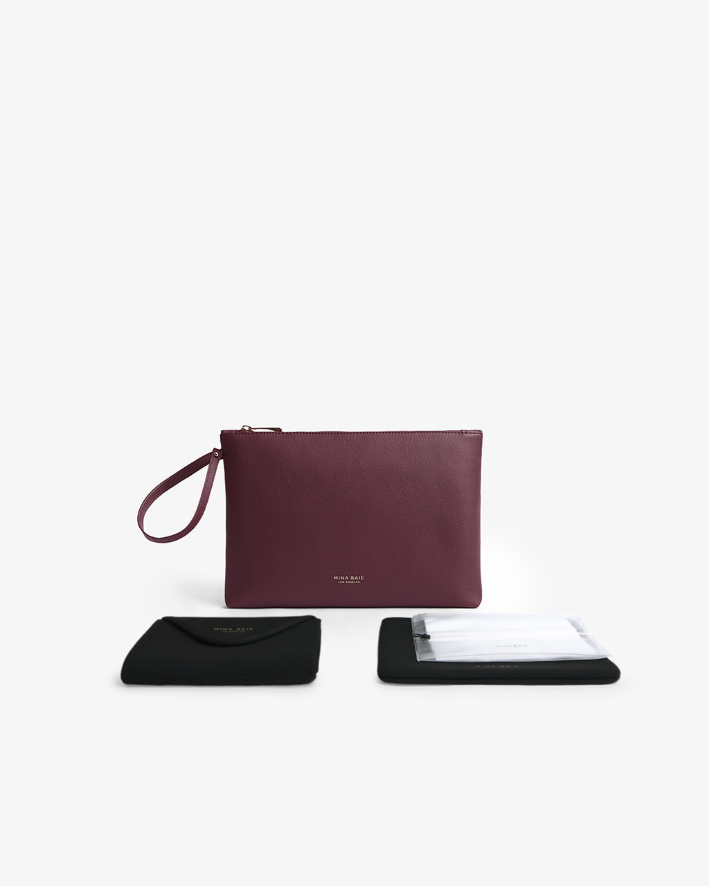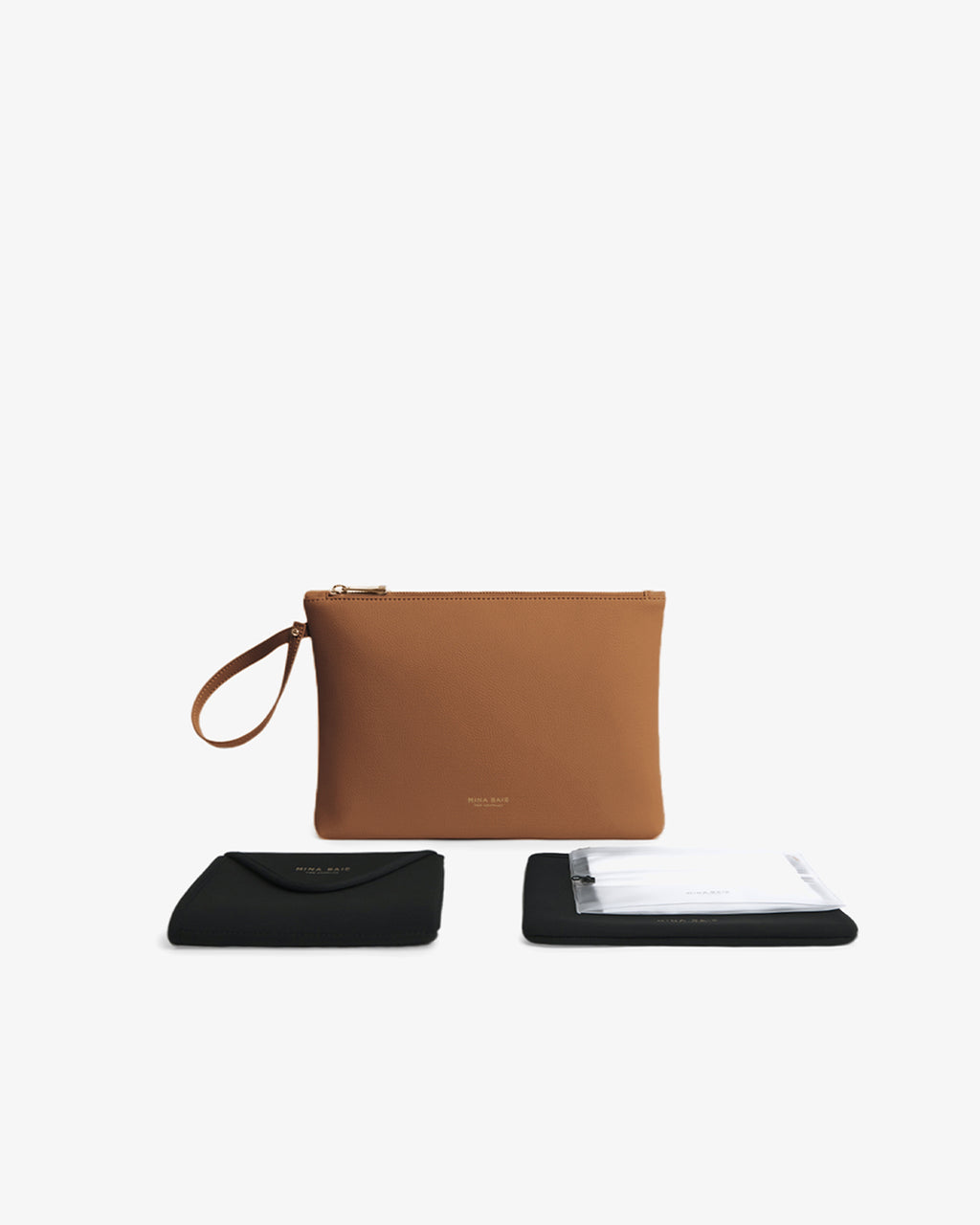 Mamas, we know the diaper changing game ain't easy, so we are here to make it a bit more fabulous. The MINA Changing Kit is designed to have all the diaper changing essentials you need, without ever having to compromise your style. Our MINA Kit comes with a large vegan pouch, a neoprene wet bag, a foldable changing pad, and a refillable wipes case. So go ahead mama, keep that tush clean and feel good doing it.