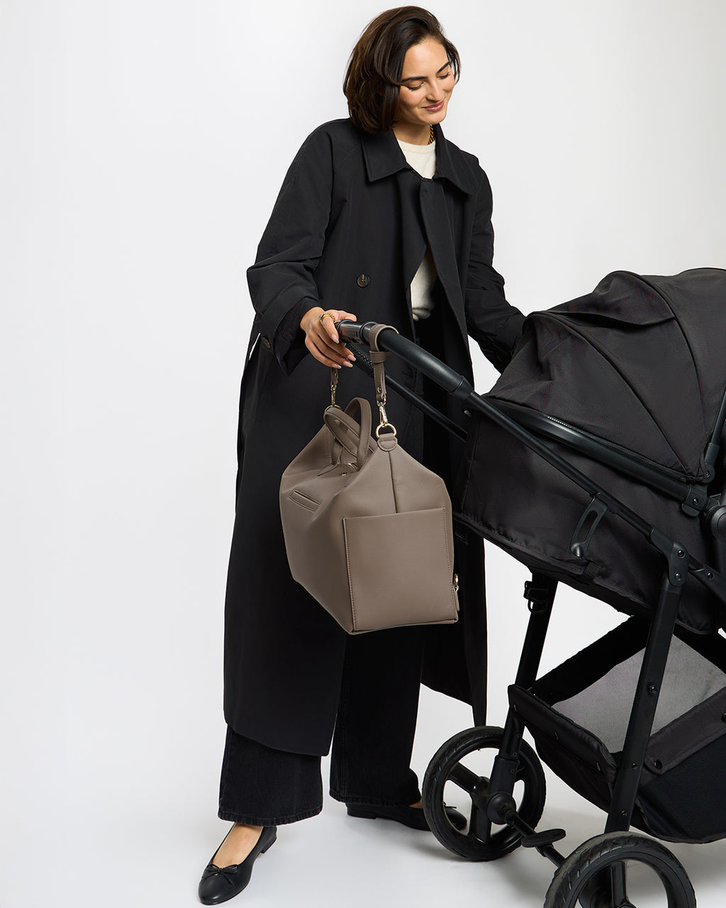 Works great and looks great on the stroller! I use this with my Harlow instead of using a stroller caddy because I am an overpacker..