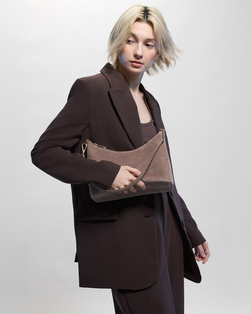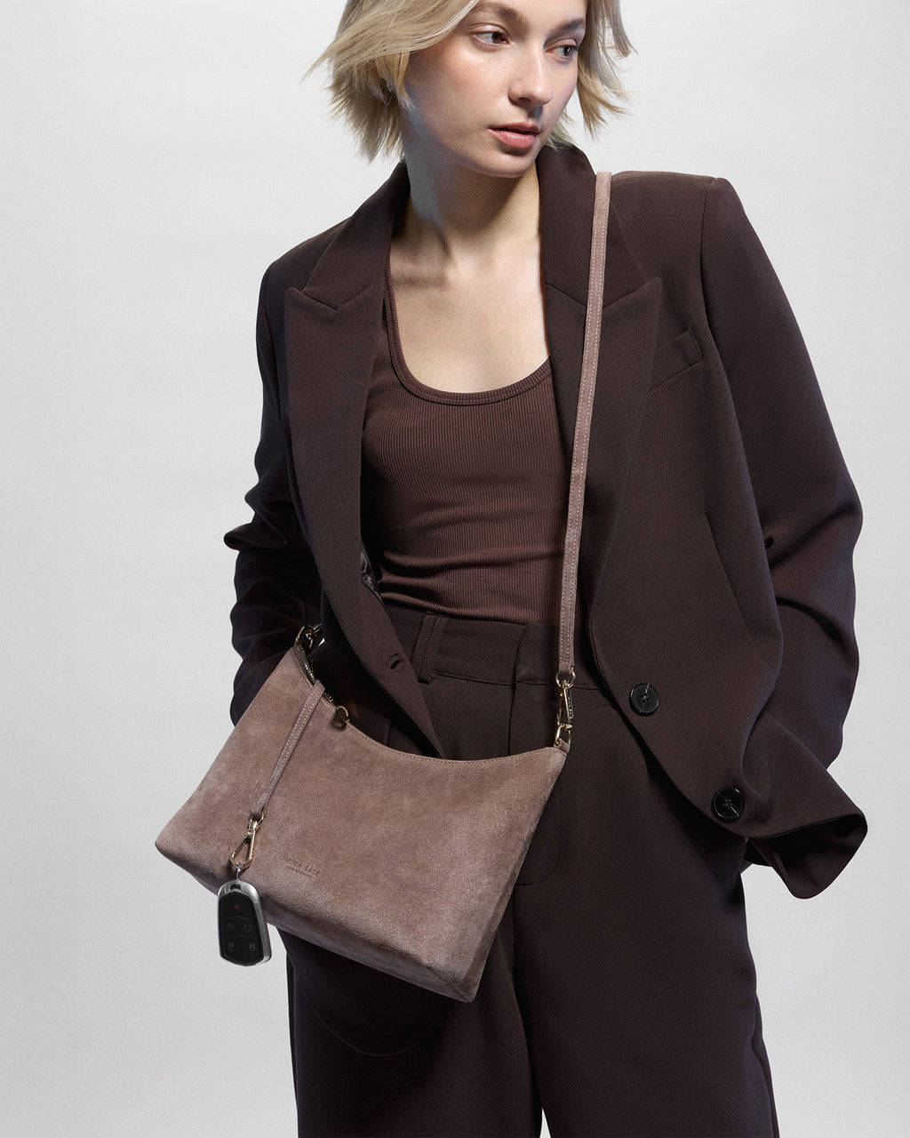 Soft sophistication meets everyday style in the Addison Suede. Crafted in luxe suede with smooth leather trim, it features interchangeable straps and smart interior organization for effortless versatility.