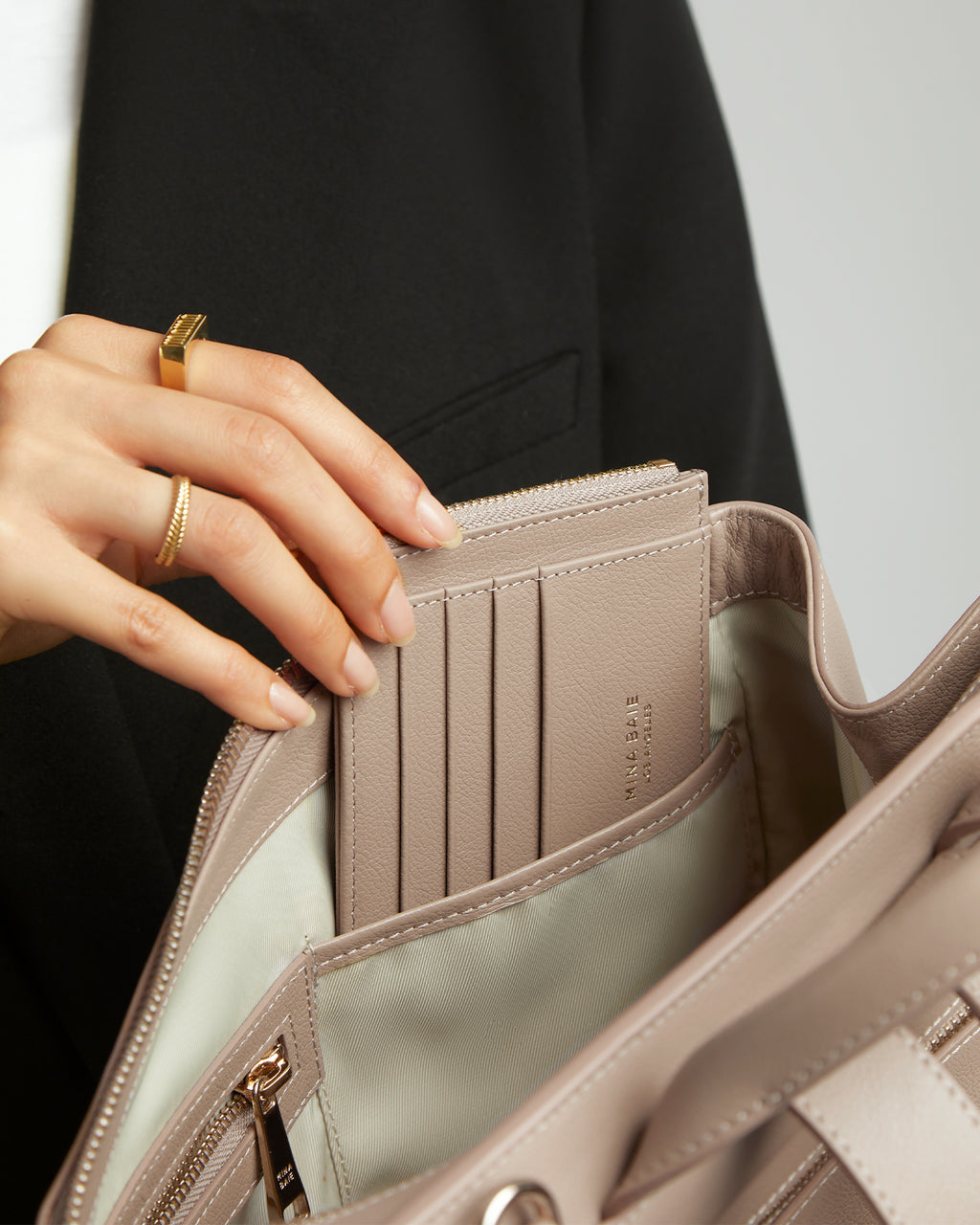 Slim, sleek, and simple—the Lijah Mini is everything you love about our Lijah Wallet but downsized. Its quality leather and neutral color options pair beautifully with MINA bags of all sizes.