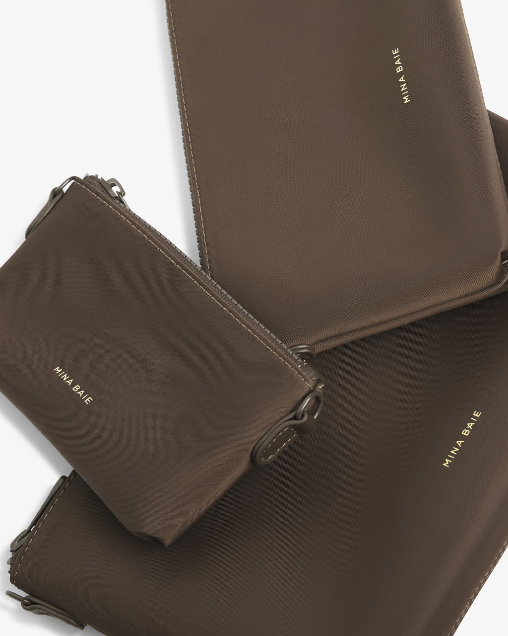 Made with our beloved nylon, it’s soft to the touch and durable. This set will get you excited about getting organized and leaving the house. Not just for pouch-packing, the Mia set comes with a Nappa leather strap, so you can convert any of the three pieces to a crossbody bag.