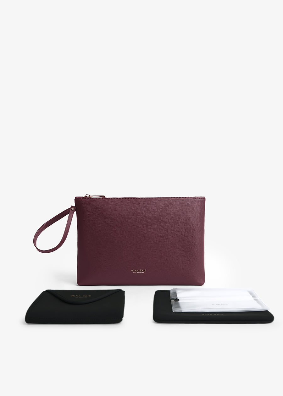 Mamas, we know the diaper changing game ain't easy, so we are here to make it a bit more fabulous. The MINA Changing Kit is designed to have all the diaper changing essentials you need, without ever having to compromise your style. Our MINA Kit comes with a large vegan pouch, a neoprene wet bag, a foldable changing pad, and a refillable wipes case. So go ahead mama, keep that tush clean and feel good doing it.