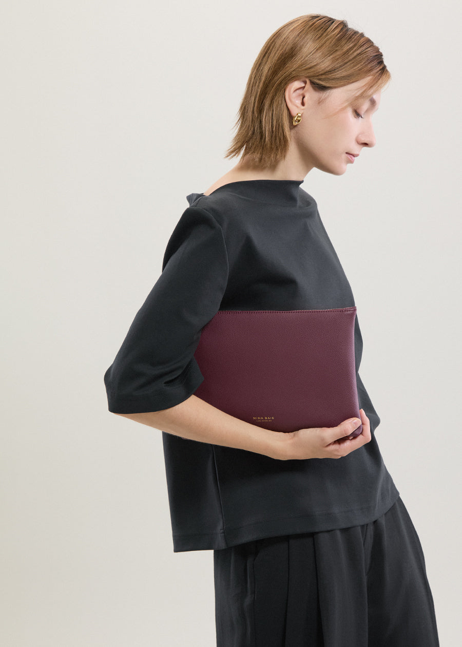 Vegan pouch/wristlet Dimensions: 11”W x 8”H x 1"D