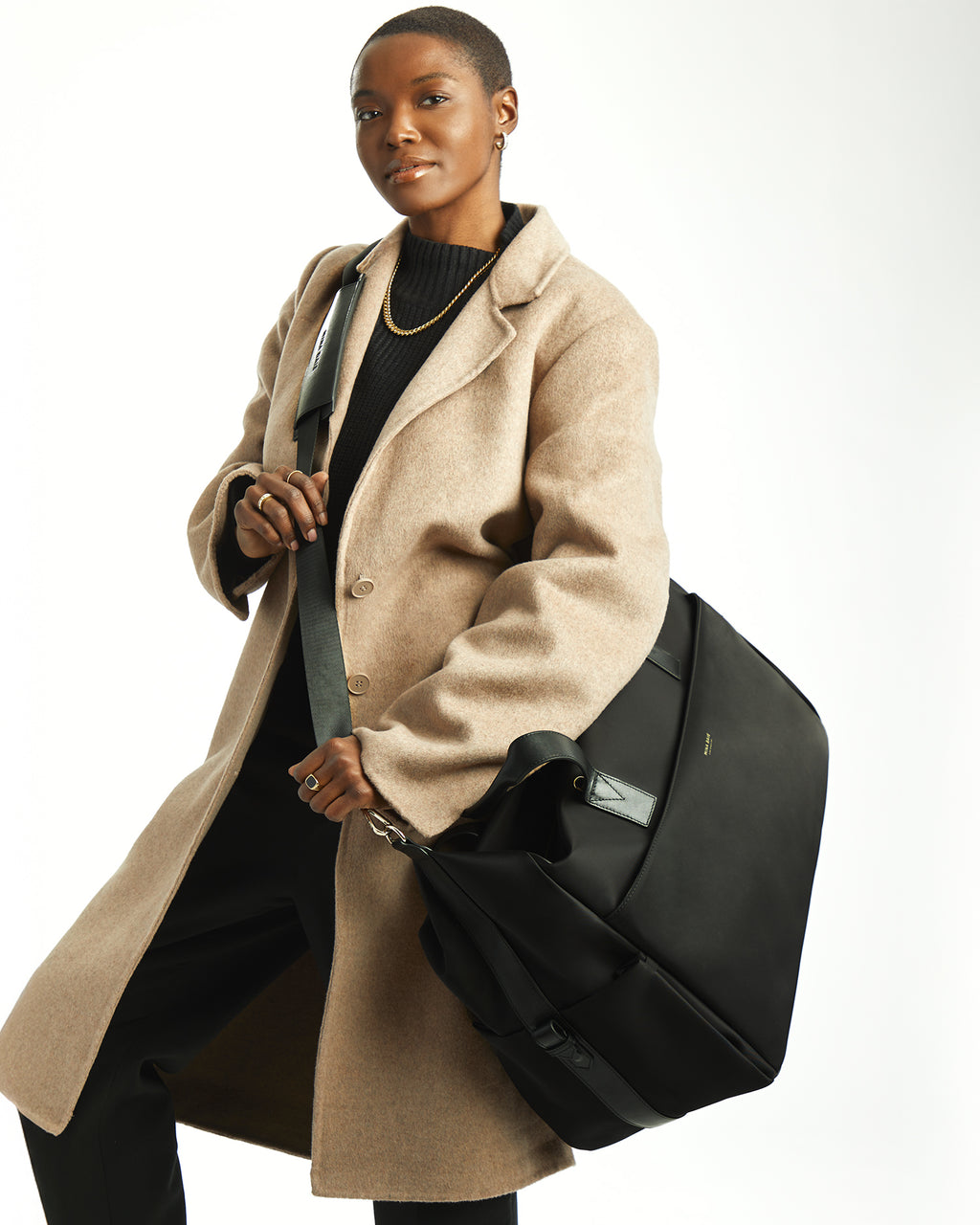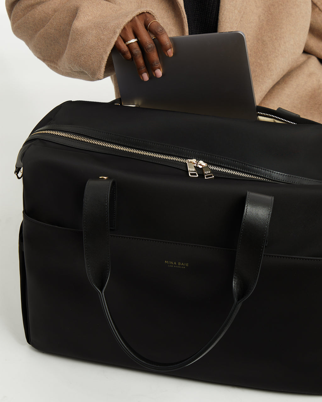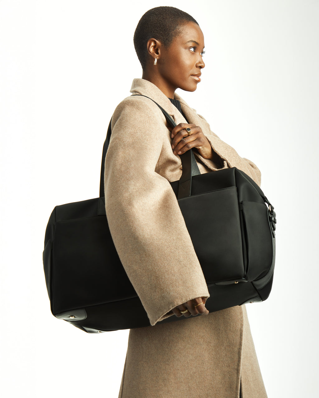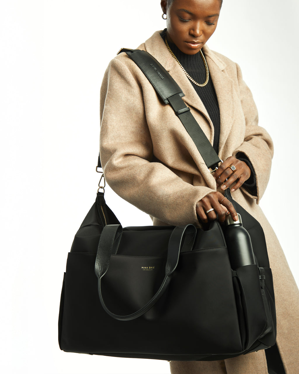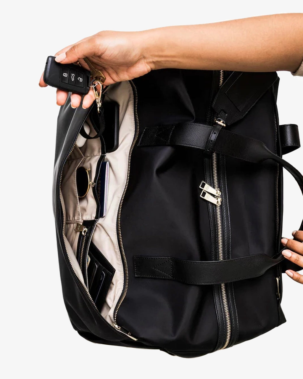 Hospital bag. Weekender bag. Overnight bag. Our London Weekender is down for whatever. It’s thoughtfully designed for all things travel—it has the space and organization a mama needs and is an absolute beauty to carry. Our nylon weekender has leather trimmings and includes a crossbody strap. It has pockets for everything from your laptop to a baby bottle. Your travel game will never be the same with the London Weekender by your side.