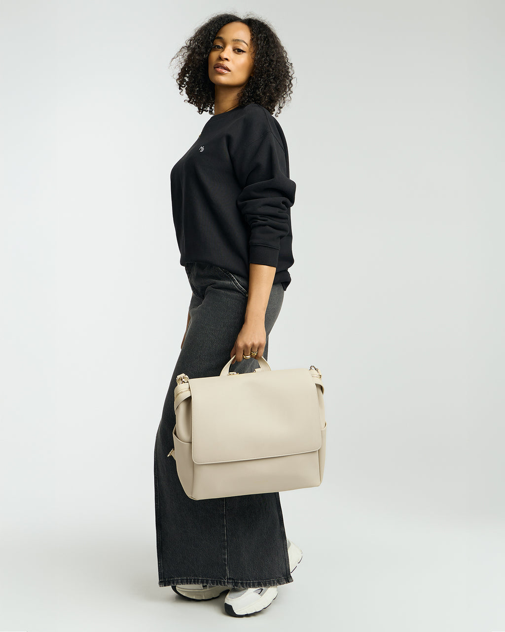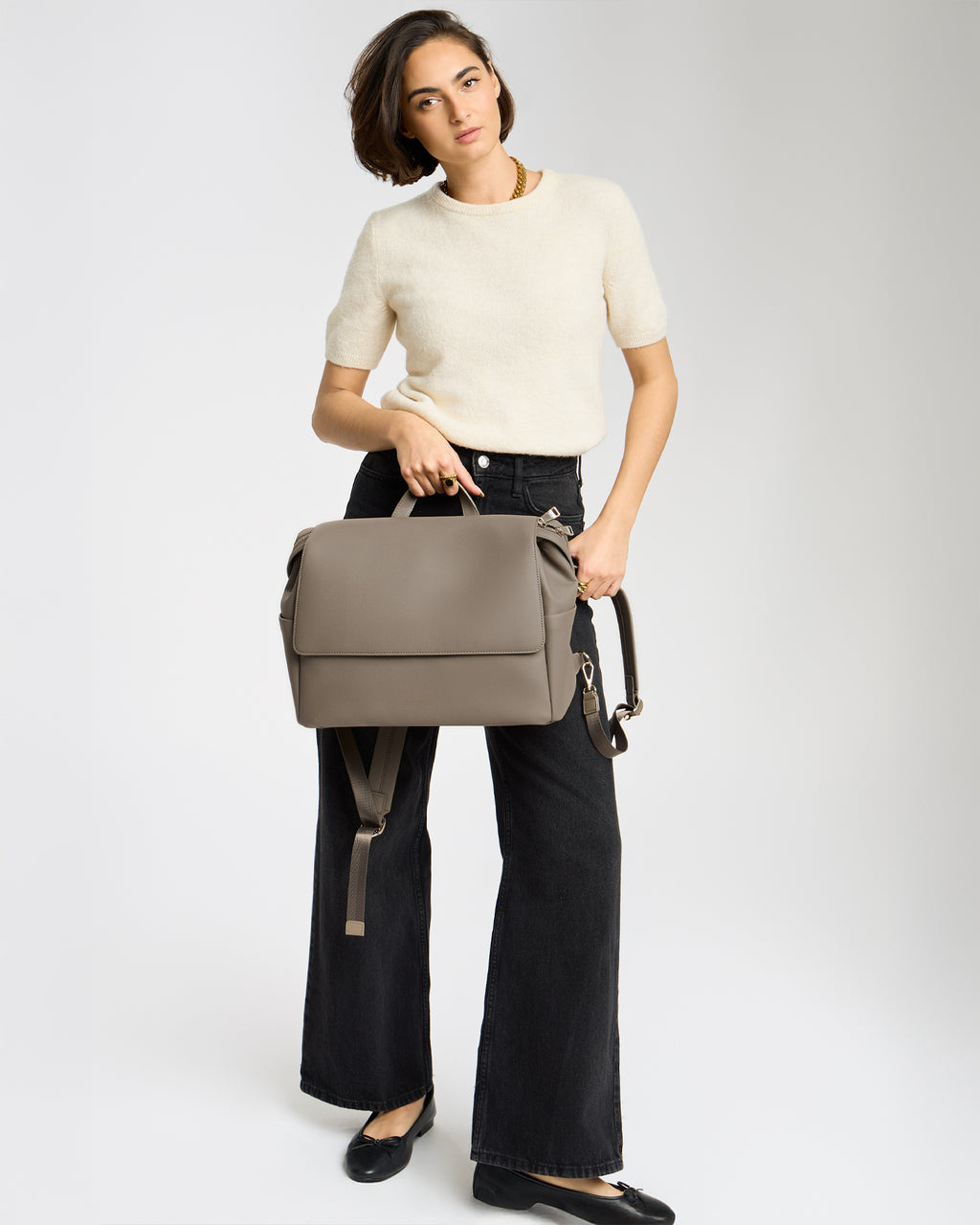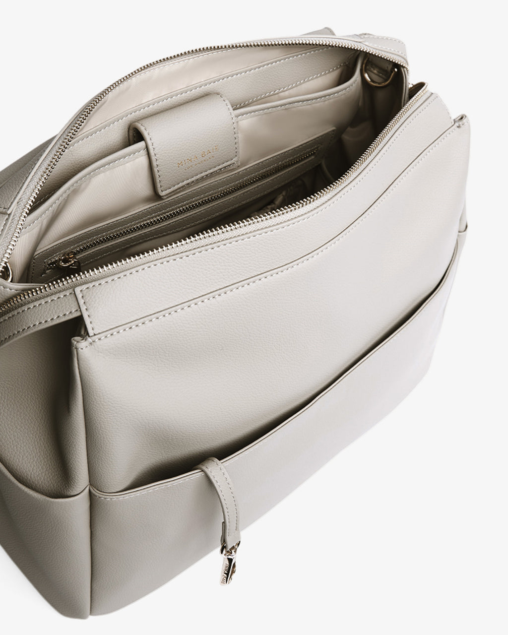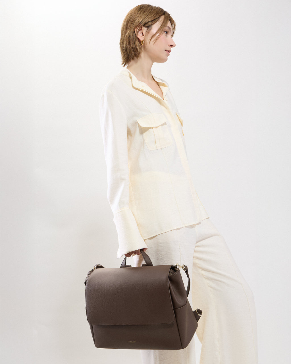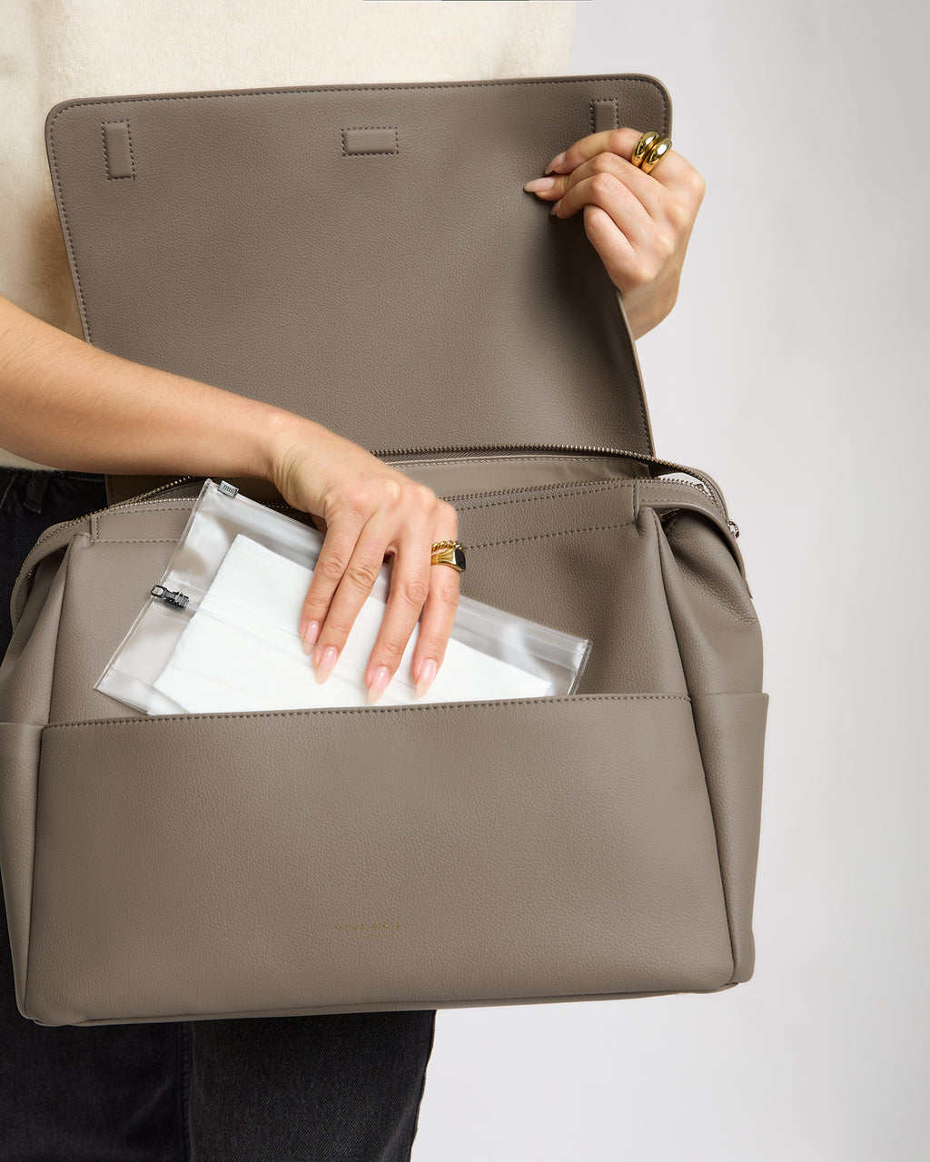 The ultimate hybrid of our bestselling Kinney and Emmy bags, designed for moms who need form, function, and flexibility in one stunning package. She has a wide-open top, convertible straps, and smart interior features to carry your essentials in style.