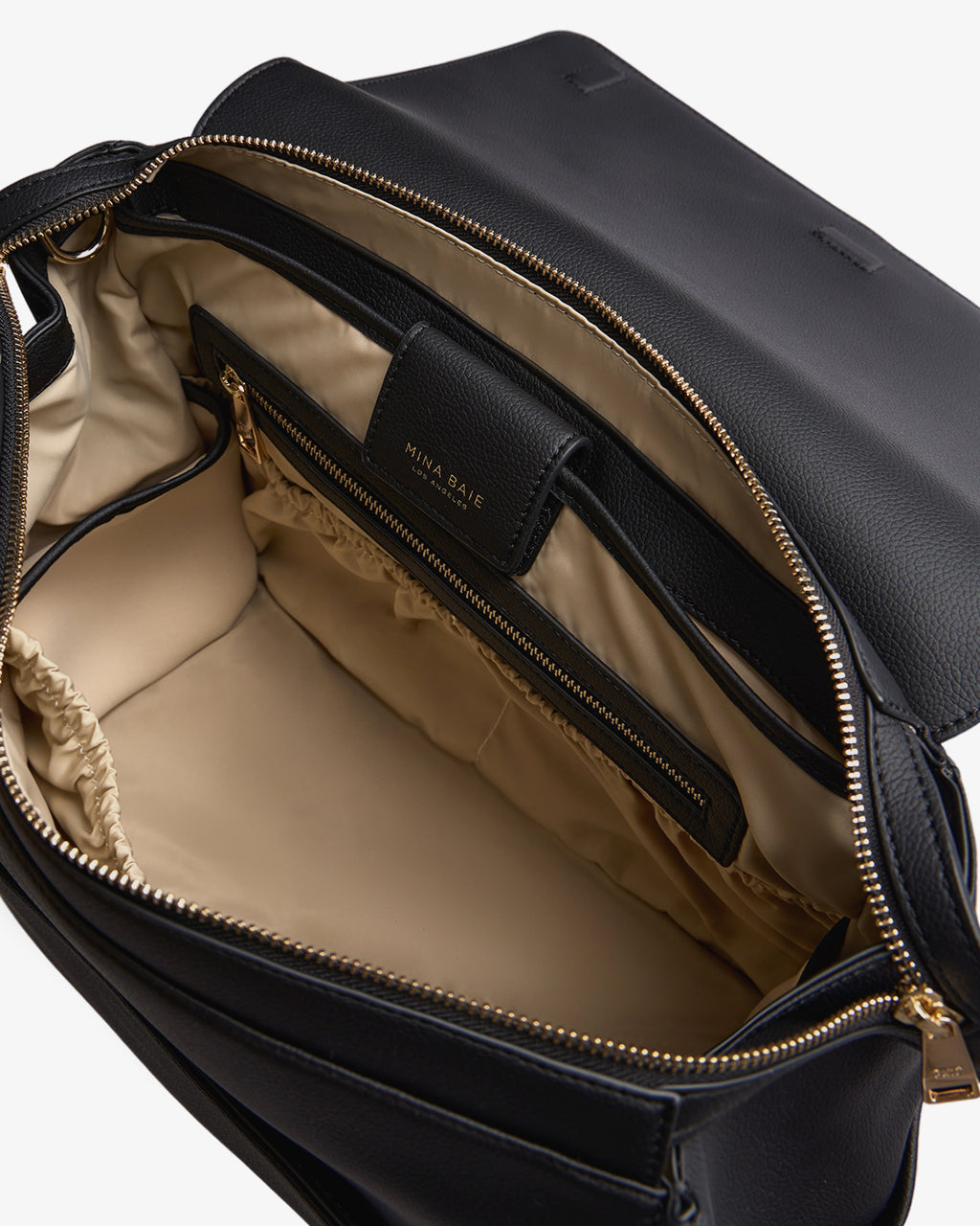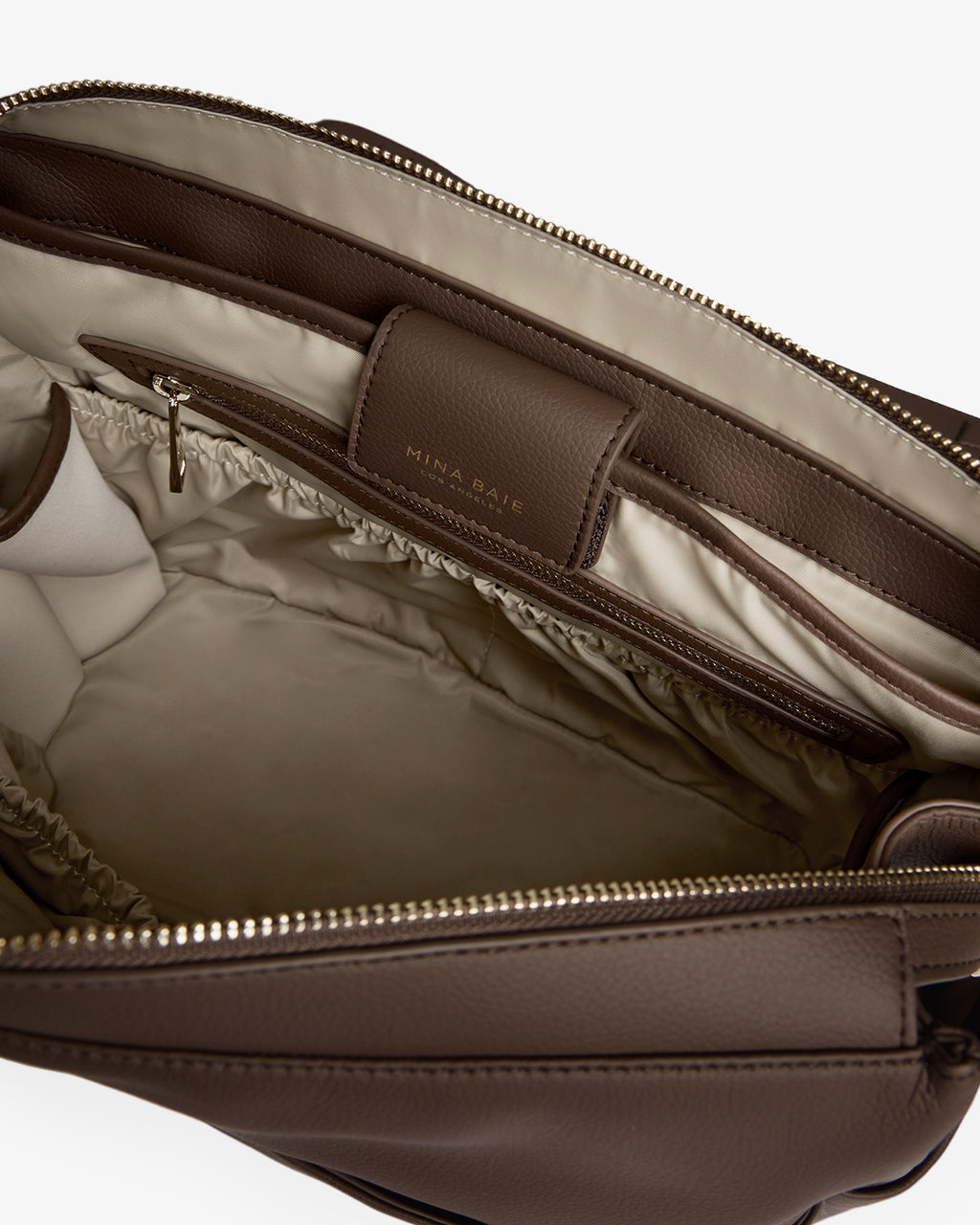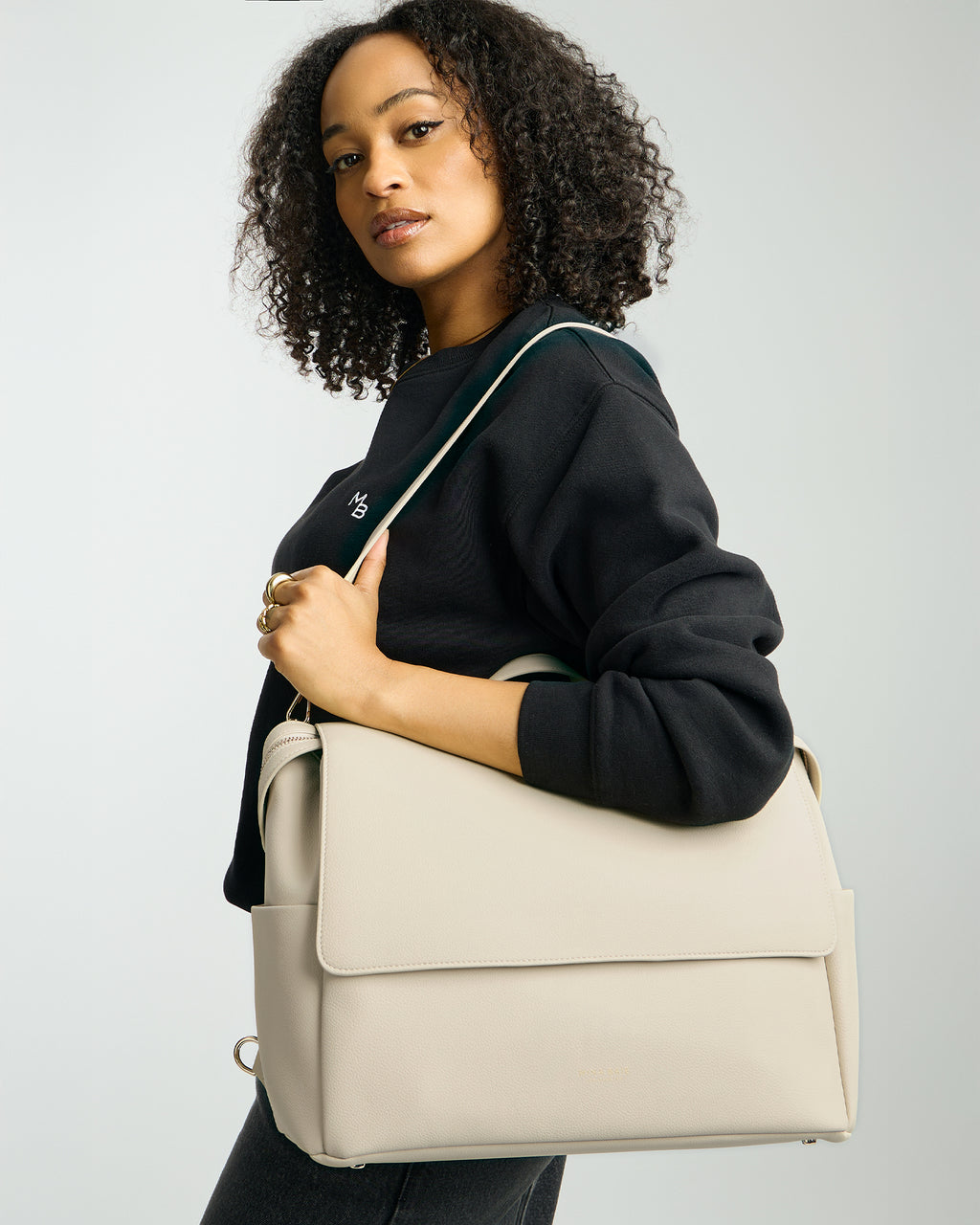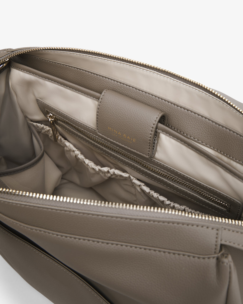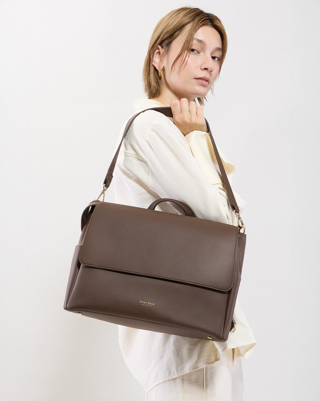 The ultimate hybrid of our bestselling Kinney and Emmy bags, designed for moms who need form, function, and flexibility in one stunning package. She has a wide-open top, convertible straps, and smart interior features to carry your essentials in style.