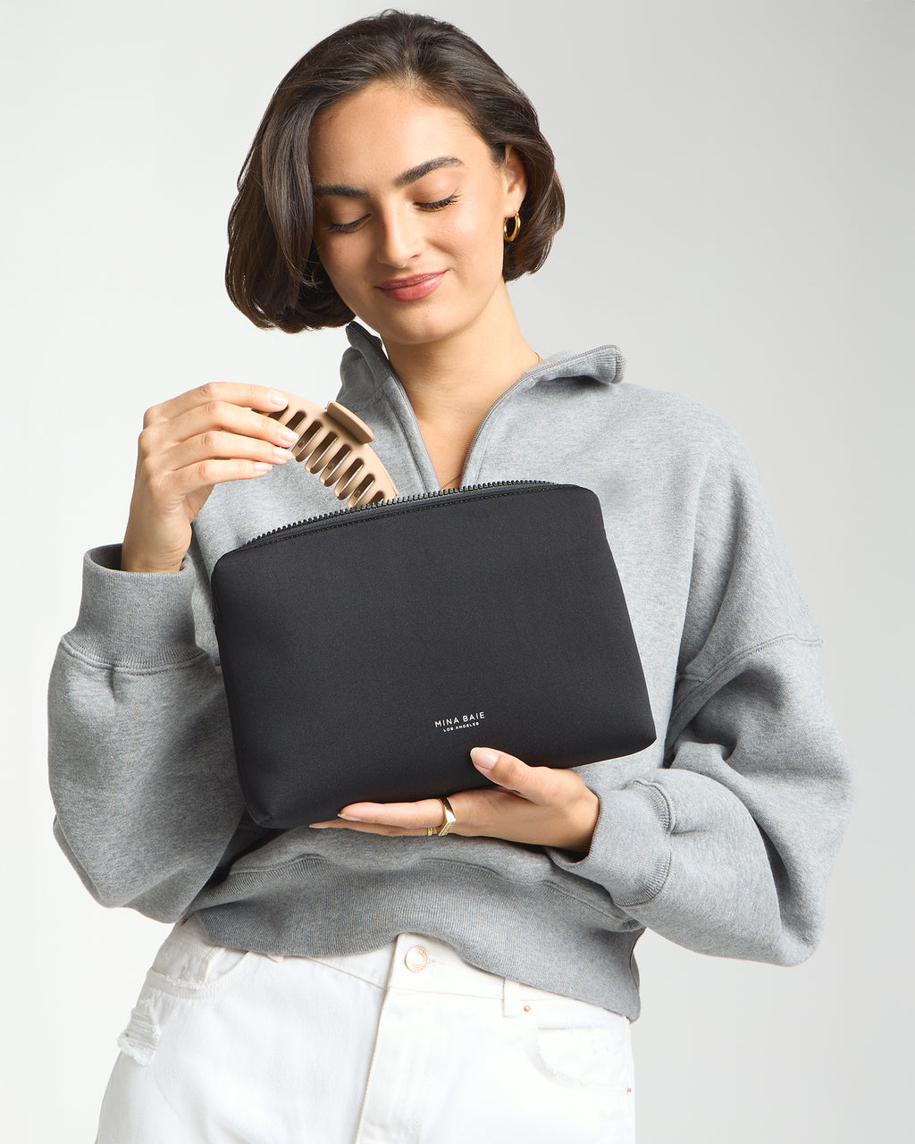 Keep your smaller everyday essentials organized with our versatile small neoprene pouch. Perfect for tucking inside your larger bag, this pouch is ideal for storing keys, cosmetics, chargers, and more. Made from durable and lightweight neoprene, it offers excellent protection for your items while being incredibly easy to clean. The sleek design and practical size make it a must-have accessory for anyone on the go.