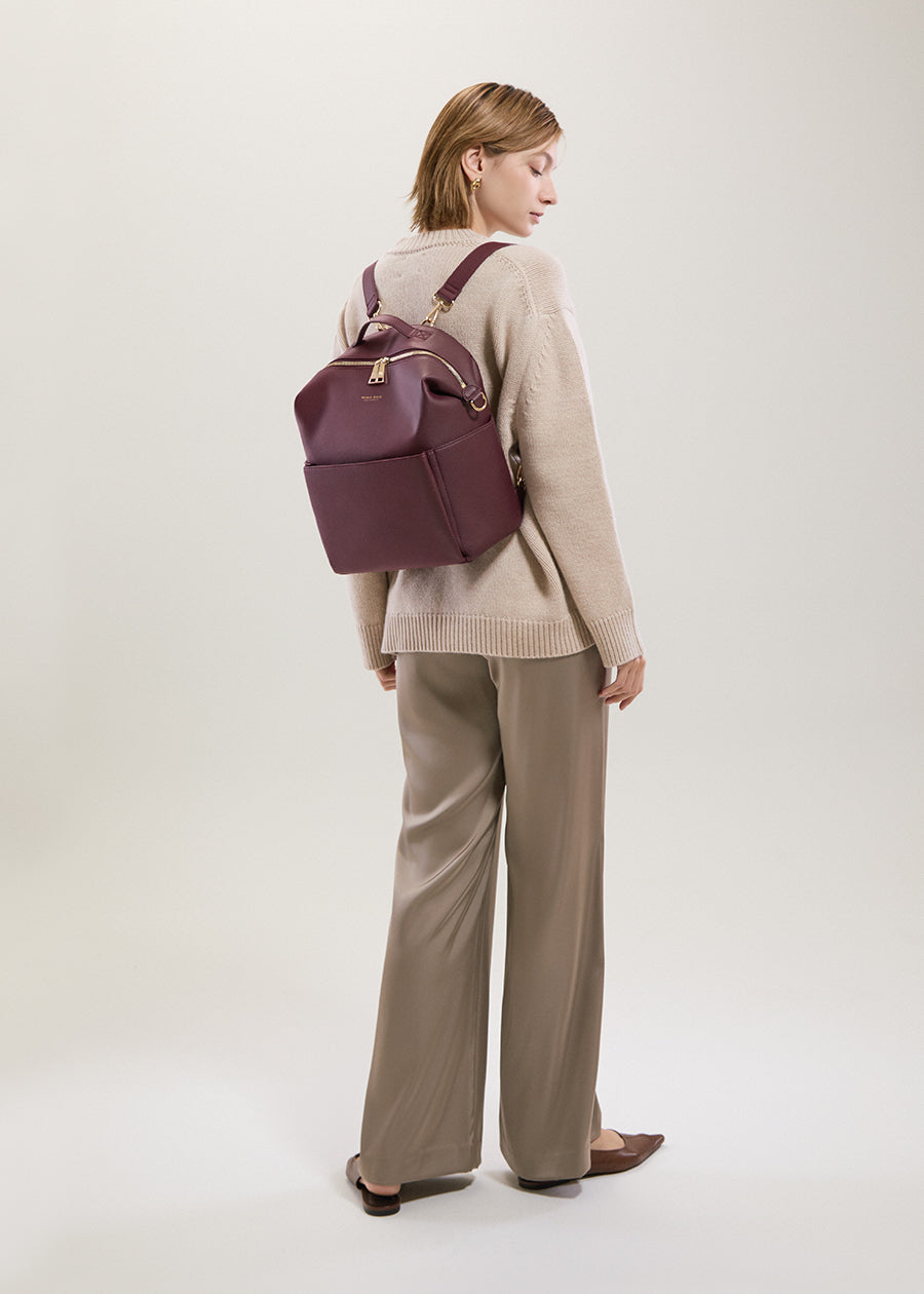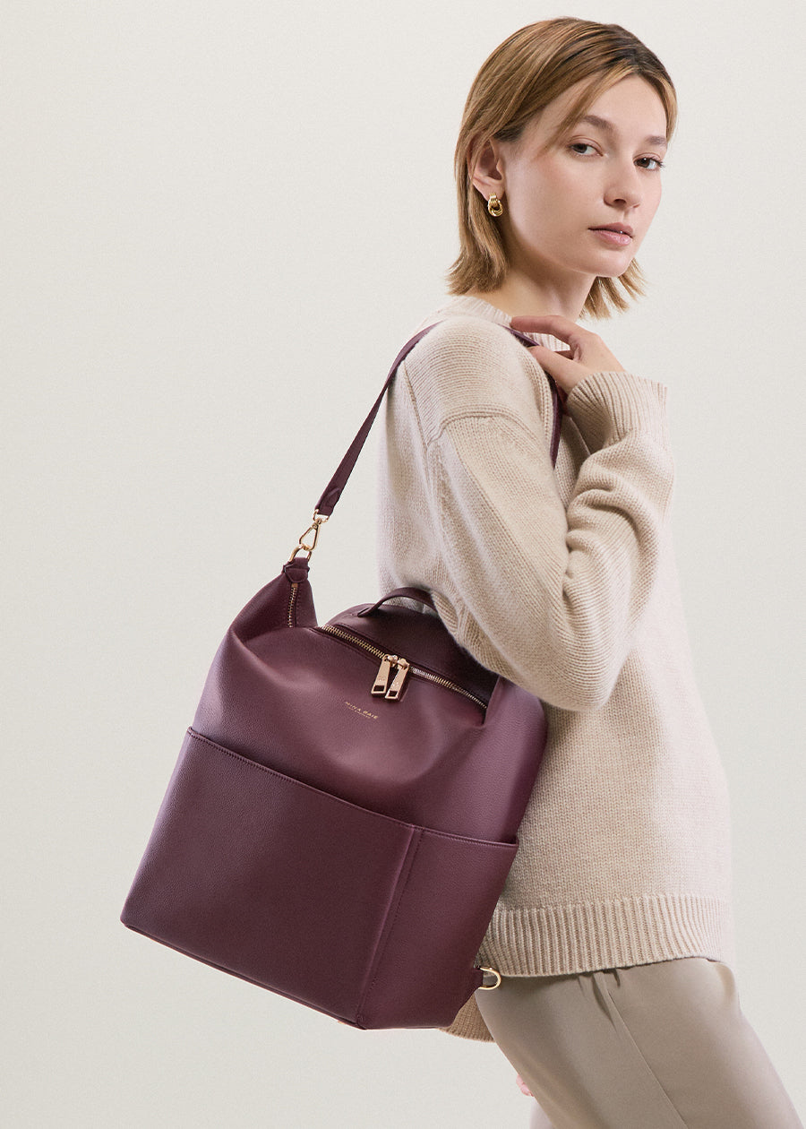 Stevie Midi is gender-neutral, edgy, and has the space to hold just the essentials. From a hike to the store, from work to the park, her eight internal pockets and easy-to-clean microfiber vegan leather make her the perfect bag to take just about anywhere. This ‘just right size’ is ideal for the mama who’s ready to downsize, and who likes nice things yet doesn’t want to fear the rough & tumble. Stevie’s all about options – her backpack converts to a shoulder strap, and her intuitive internal organization encourages minimalist-yet-prepared packing. Wear her as you please, pack her with ease.