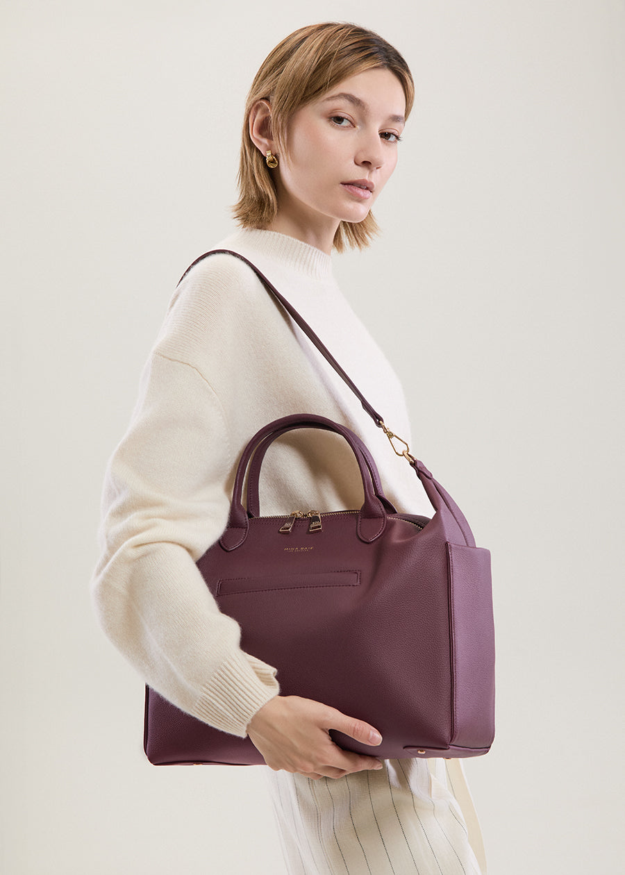 Emmy Midi is a “just right” sized tote-style diaper bag with the same features as the full-sized version, so everything you and baby need is easy to see and reach. Our microfiber vegan leather makes Emmy structured yet slouchy and is so durable that it doesn’t need to be babied. She works best as a shoulder bag or crossbody but can be converted to a backpack when you want to be hands-free. From jeans and sneakers to yoga pants or a party dress, Emmy’s clean lines enhance any style.